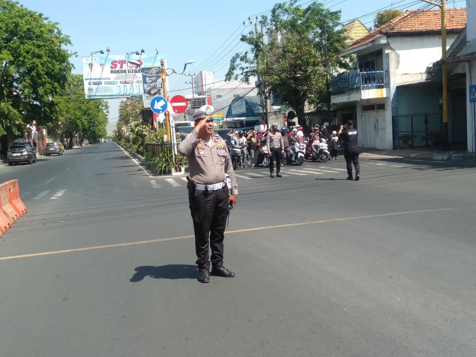 “Ya mas, saya merinding dan terharu saat ada perintah dari komandan untuk memberikan penghormatan ke Bendera Merah Putih yang dibawakan Petugas Lalu Lintas di tengah perempatan Brak, semoga Indonesia kedepannya semakin baik lagi di umurnya yang ke 80 tahun ini,” Ungkap Jaka kepada media online Otoritas.id
