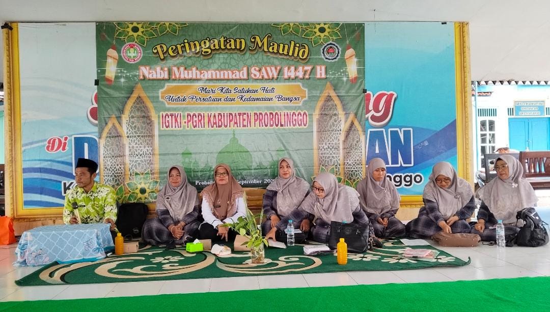 Ikatan Guru Taman Kanak-kanak Indonesia-Persatuan Guru Republik Indonesia (IGTKI-PGRI) Kabupaten Probolinggo menggelar peringatan Maulid Nabi Muhammad SAW di Balai Desa Pajurangan Kecamatan Gending, Rabu (10/9/2025).