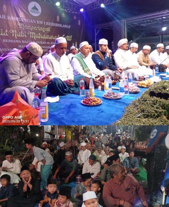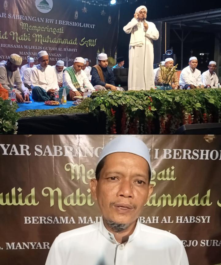 Sabtu malam, didepan balai RW 01 Jl. Manyar Sabrangan No. 23 Surabaya, warga RW 01 Kelurahan Manyar Sabrangan Peringati Maulid Nabi SAW gelar bersholawat bersama Majelis Gubah Al Habsyi Mengundang Kapolsek Mulyorejo, Danramil Sukolilo, Camat Mulyorejo, Lurah Manyar Sabrangan, Ketua RW 01 sampai RW 08, Ketua LPMK, tokoh agama, tokoh masyarakat. Ketua RT se – RW 01 sampai RW 08. Ketua Ta’mir Masjid serta Ta’mir mushollah, beserta warga umum. Senin ( 22/9/25)