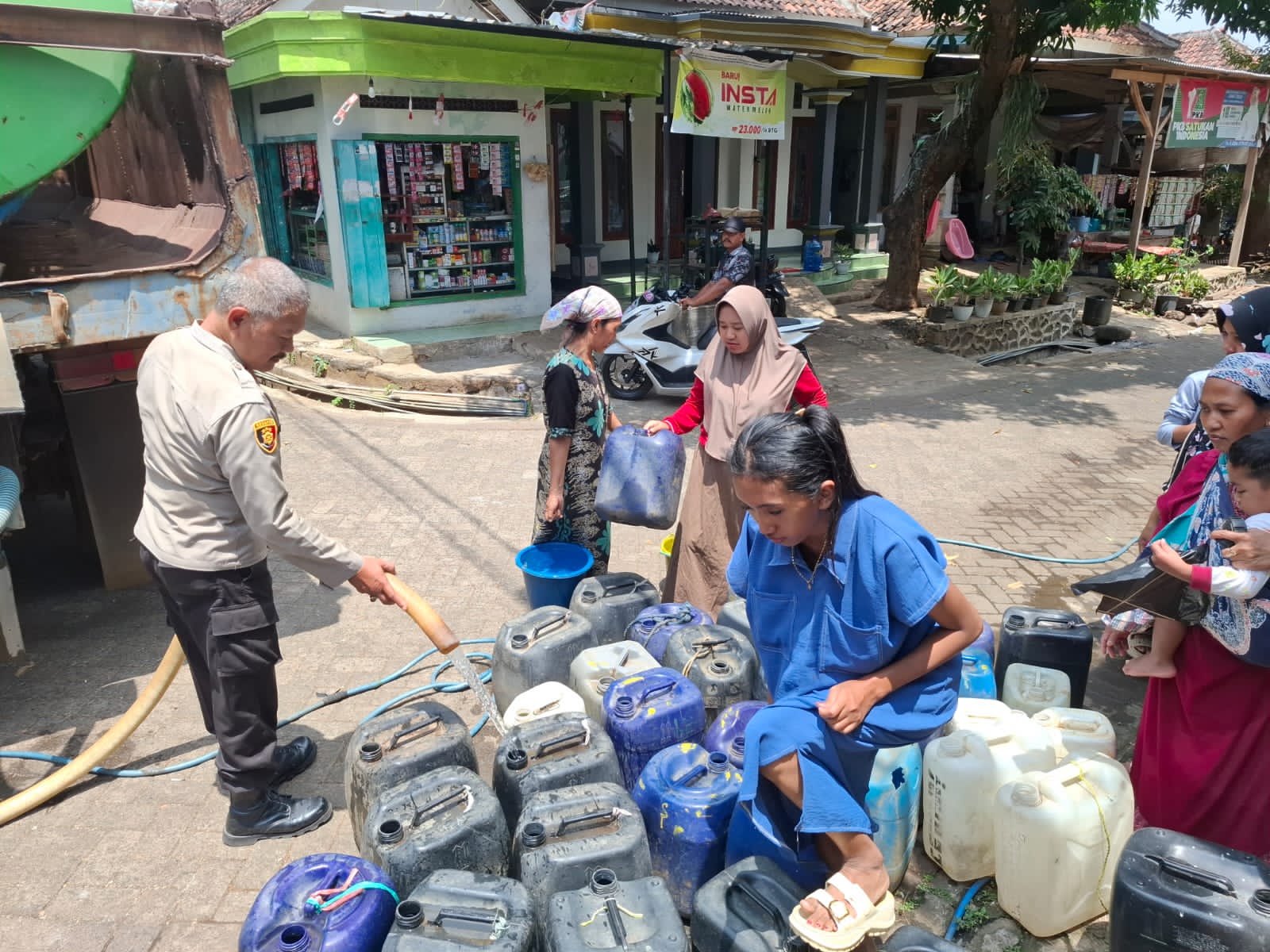 Selain menyalurkan air bersih, Kapolsek juga berdialog dengan warga serta Kepala Dusun Jatisari untuk mendengarkan langsung keluhan mereka terkait kesulitan mendapatkan air bersih.