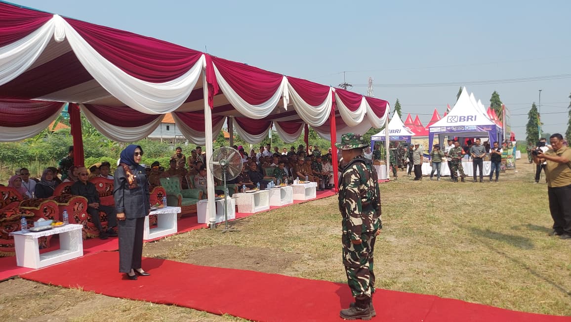 Upacara Pembukaan TNI Manunggal Membangun Desa (TMMD) di lapangan Desa Kedondong Tulangan – Sidoarjo meninjau langsung sasaran fisik TMMD, Amanat Irup Mimik Idayana serta pernyataan resmi pembukaan TMMD ke-126 TA 2025, yang intinya