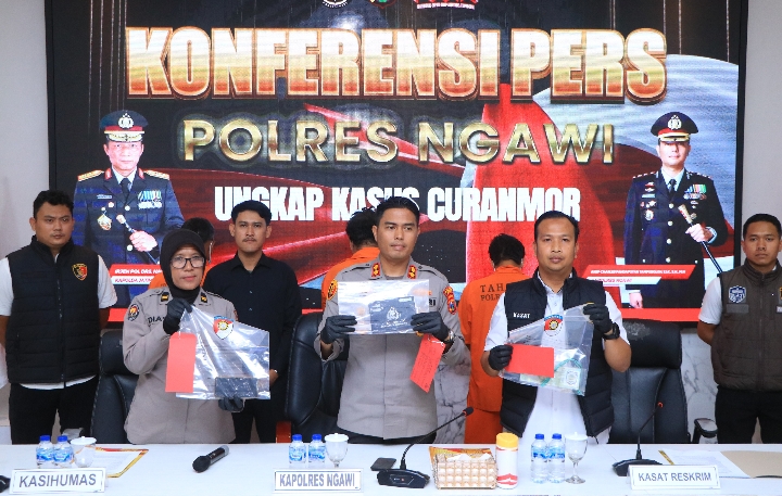 Ngawi,Komposisinews.com – Polres Ngawi Polda Jatim berhasil mengungkap kasus pencurian kendaraan bermotor (curanmor) roda dua lintas provinsi, kurang dari 24 jam.