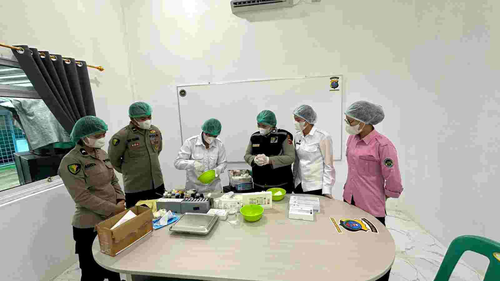 Tim yang terdiri dari IPDA drg. Ray Oloan, Brigpol Septi M. Napitupulu A.Md. Keb., SH, Bripda Adekta Marbun, Bripda Syafrilianti, dan TKK Yuni melakukan pemeriksaan keamanan pangan menggunakan bahan reagen kimia untuk mendeteksi kandungan Arsen, Phospat, Sianida, Hyrise, Borax, PH, Nitrit, Nitrat, dan Formaldehyd.