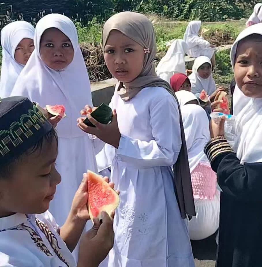 Usai Rayakan HSN, Siswa SDN Blado Wetan Nikmati Semangka Segar Pemberian Warga