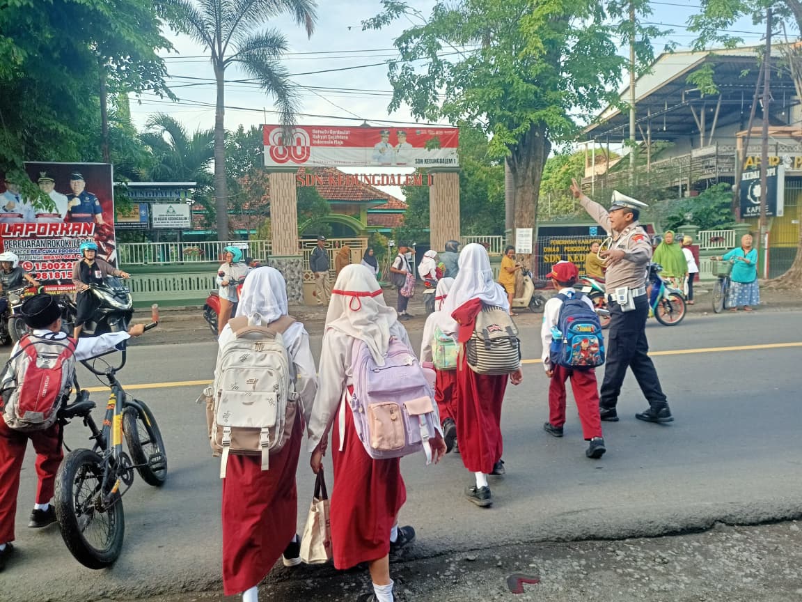 Kegiatan Rutin pelayanan kepada masyarakat penguna jalan setiap Pagi ini yang dilaksanakan di Jalan raya kecamatan Dringu. Tepatnya. Depan SD Kedung dalem 1 terpantau awak media saat anggota Satlantas Polres Probolinggo melakukan tugas pemantauan dan pengamanan lalu lintas yang disebut poros pagi.