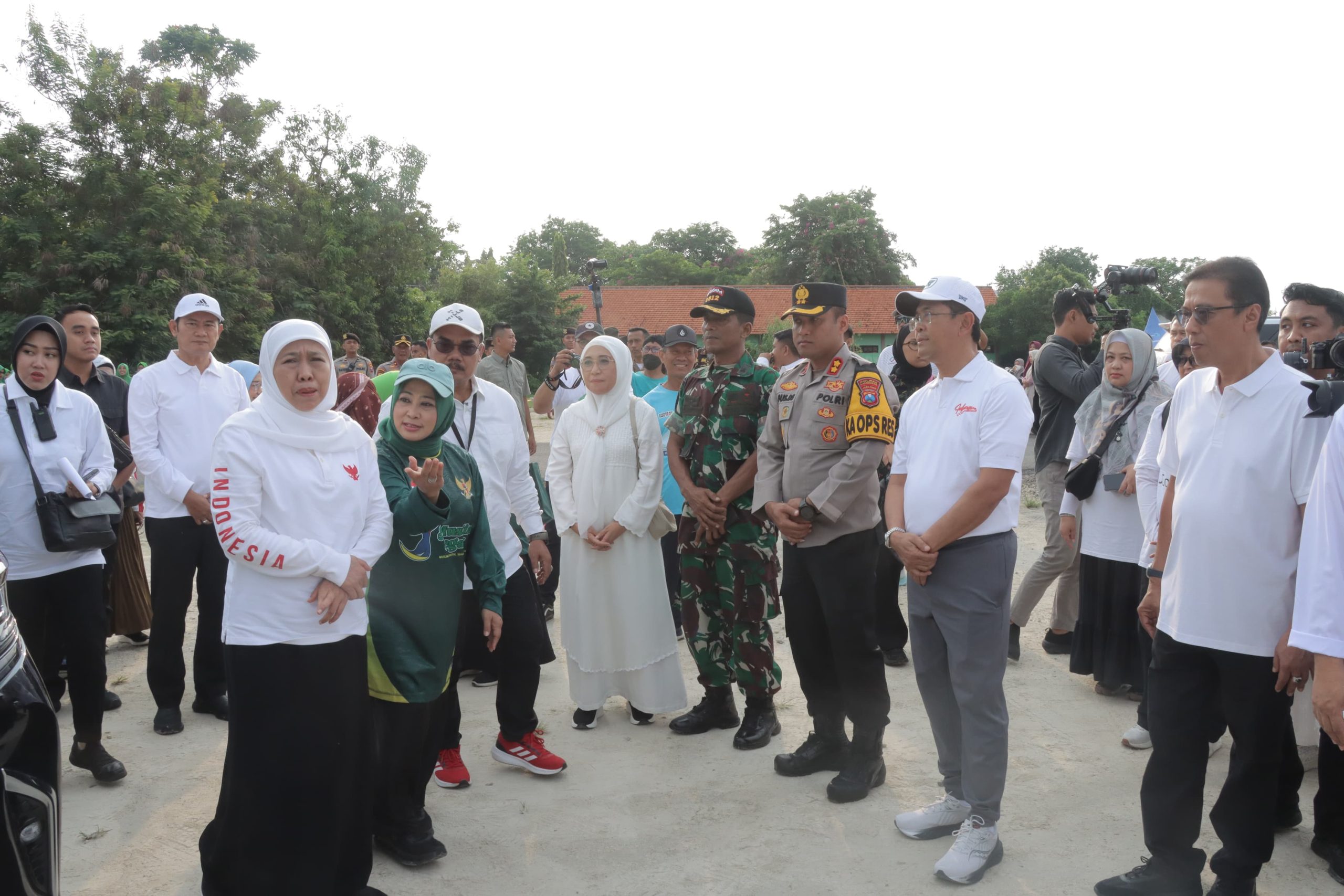 Kegiatan ini turut dihadiri oleh Gubernur Jawa Timur Dra. Hj. Khofifah Indar Parawansa, M.Si., Bupati Lamongan Dr. H. Yuhronur Efendi, MBA., M.Ek., Wakil Bupati Lamongan Dirham Akbar Aksara, S.T., B.Eng., M.Sc., serta ribuan masyarakat Lamongan yang antusias mengikuti rangkaian acara.