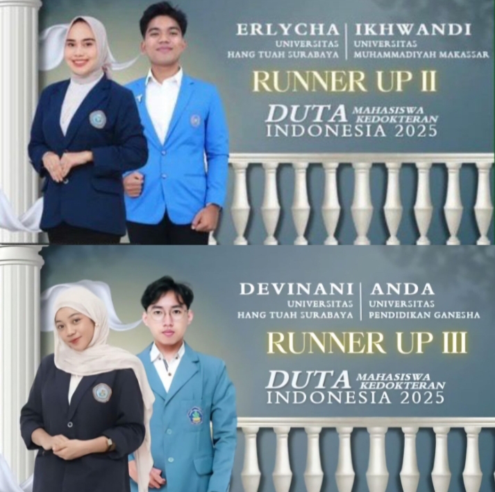 Mereka adalah Syahrilla Naswa Alamsyah Putri yang meraih Runner Up 3 dan Erlycha yang berhasil meraih Runner Up 2, keduanya berhasil mengharumkan nama Universitas Hang Tuah di kancah nasional melalui kompetisi bergengsi yang menilai wawasan, kepemimpinan dan kontribusi mahasiswa kedokteran terhadap masyarakat.