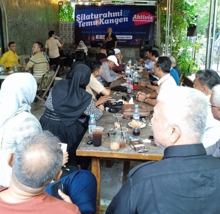 Tangerang,Komposisinews.com – Dalam rangka mempererat kedekatan antar Serikat Pekerja, purna tugas Disnaker juga Advokat yang digelar dengan Penuh khidmat ini menjadikan kebersamaan, tema ” Aktivis Ketenagakerjaan,” dan acara perdana dilaksanakan di Waroeng Babakan Kota Tangerang. Kamis, (20/11/25)