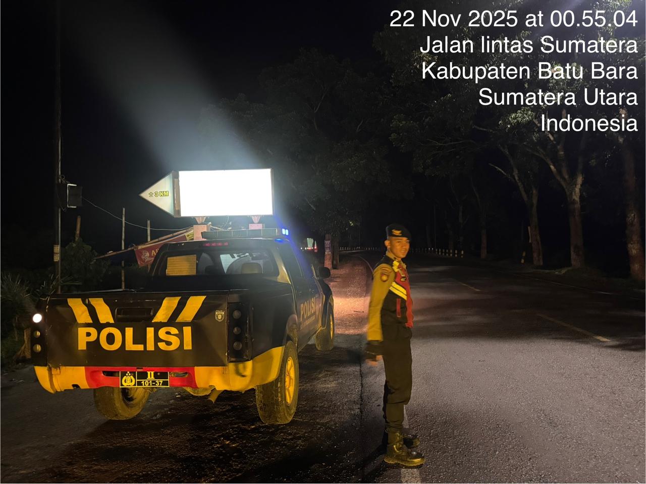 Route patroli meliputi Simpang Limau Manis dan sepanjang jalan lintas Sumatera (Jalinsum) di wilayah hukum Polres Batu Bara.