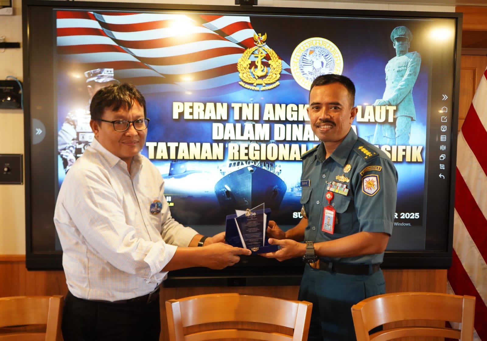 Dalam kesempatan tersebut, Kolonel Laut (P) Dofir menyampaikan materi bertema “Peran TNI Angkatan Laut dalam Dinamika Tatanan Regional Indo-Pasifik”, sebuah isu strategis yang sangat relevan dengan perkembangan geopolitik dan keamanan maritim di kawasan. Para mahasiswa mendapatkan gambaran komprehensif mengenai pentingnya kehadiran dan peran aktif TNI AL dalam memastikan stabilitas serta menjaga kepentingan nasional di tengah persaingan kekuatan besar di Indo-Pasifik.