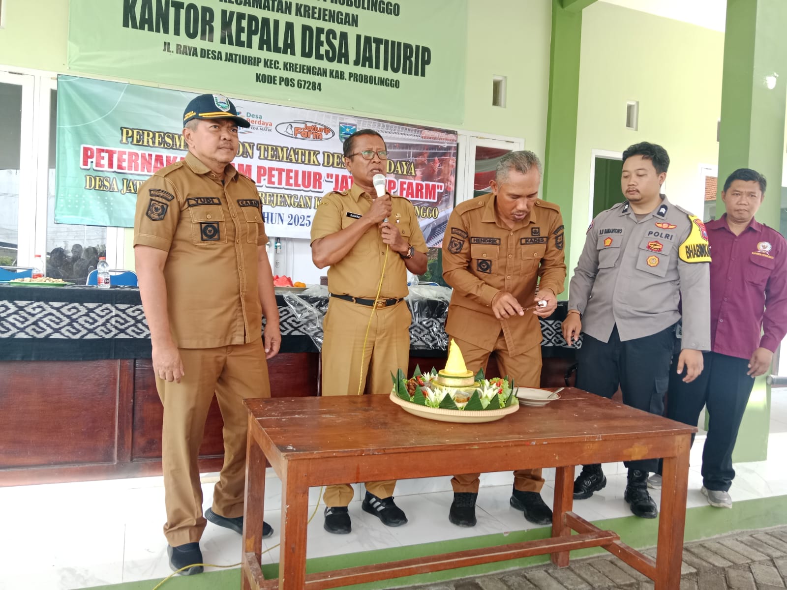 Desa Jatiurip Kecamatan Krejengan Kabupaten Probolinggo resmi meluncurkan ikon desa tematik melalui peresmian Jatiurip Farm, peternakan ayam petelur yang menjadi bagian dari Program Desa Berdaya Provinsi Jawa Timur Tahun 2025, Senin (15/12/2025). Program ini diharapkan mampu memperkuat ketahanan pangan sekaligus mendorong kemandirian ekonomi desa berbasis potensi lokal.