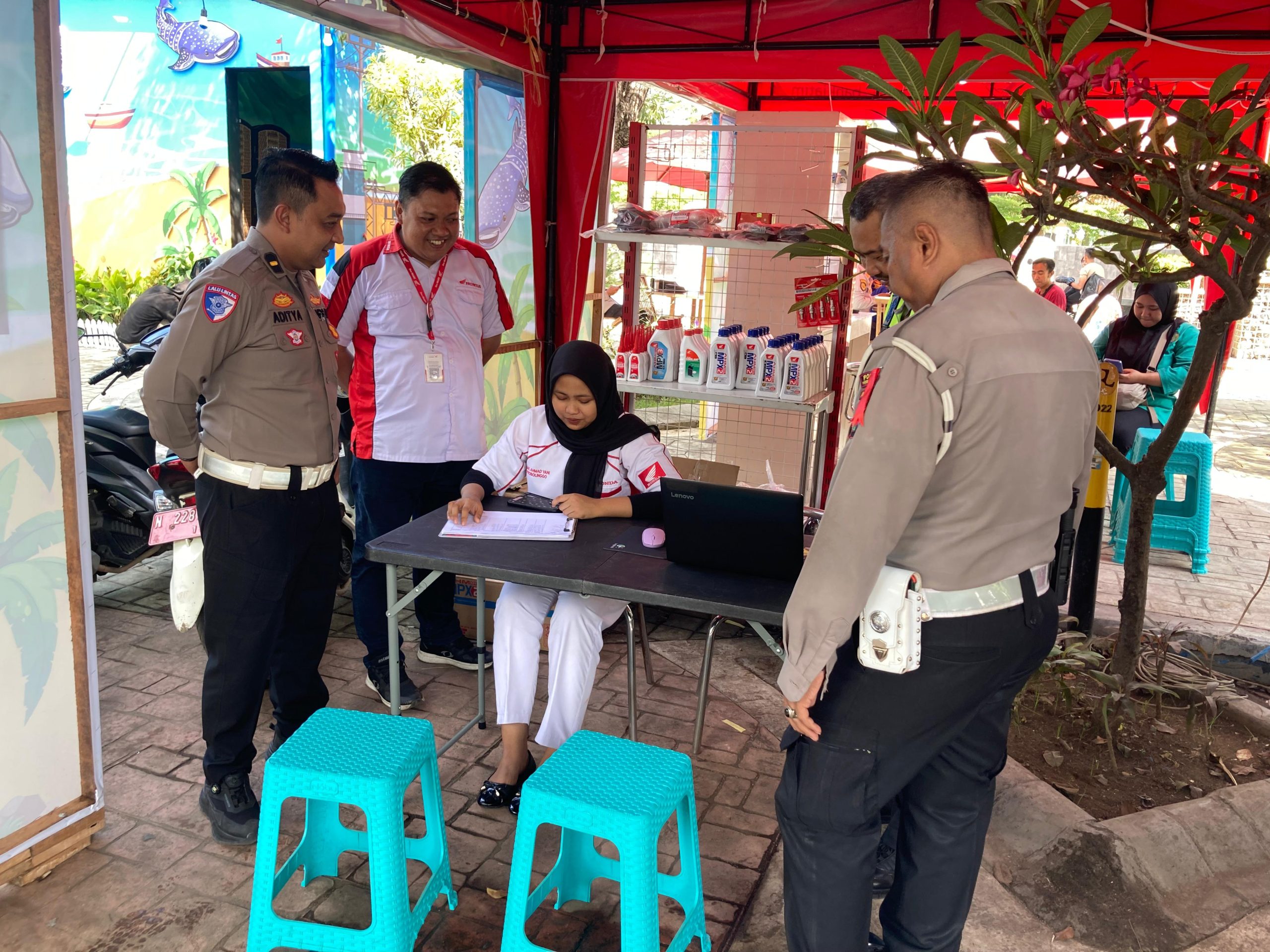 Didampingi sejumlah anggota, IPDA Aditya memastikan seluruh rangkaian pelayanan kepada masyarakat berjalan dengan aman, tertib, dan lancar. Salah satu fokus pemantauan yakni pelaksanaan layanan service dan ganti oli gratis bagi pengendara, yang disambut antusias oleh masyarakat.