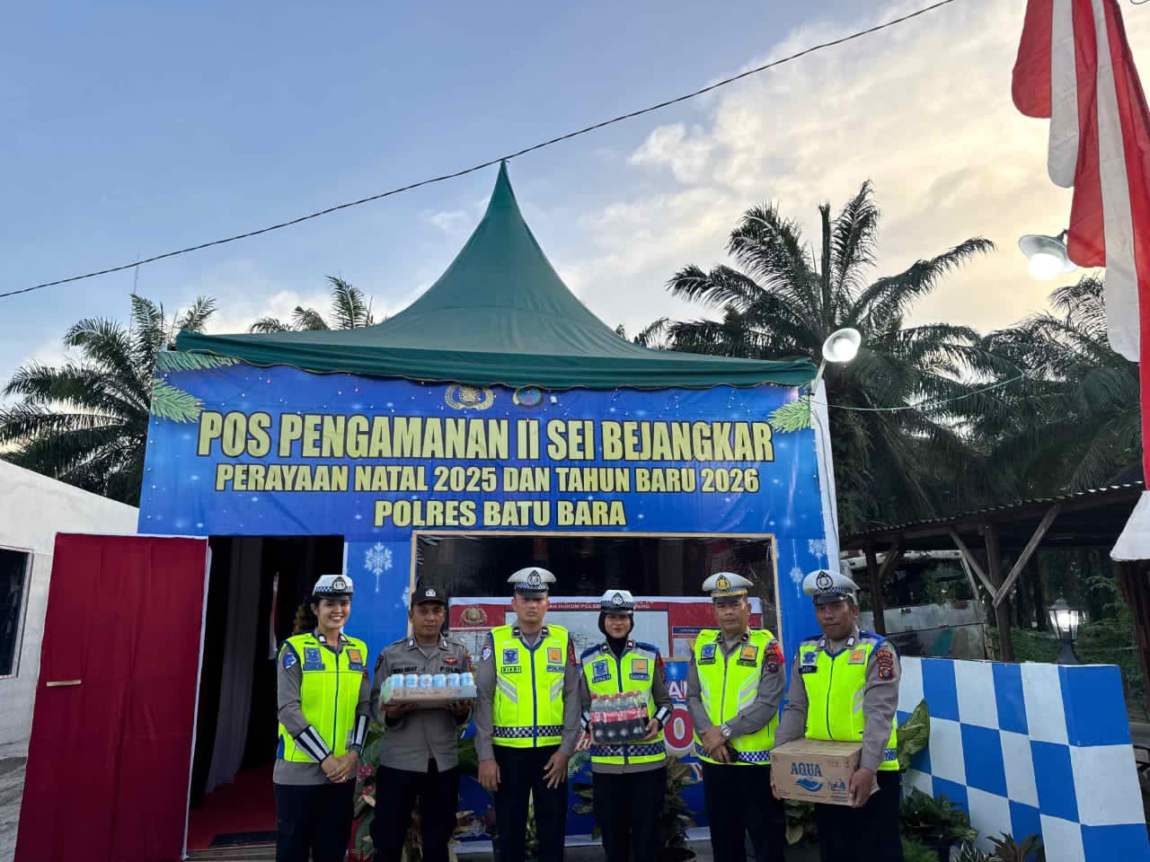 Batu Bara,Komposisinews.com– Malam Natal yang panjang tak menyurutkan semangat personel pengamanan di wilayah hukum Polres Batu Bara. Sebagai bentuk perhatian dan dukungan moril, Kasat Lantas Polres Batu Bara, AKP Simon E. Simatupang, S.H., M.H., turun langsung memberikan minuman ringan kepada petugas yang berjaga di pos-pos pengamanan (Pos Pam) dan pos pelayanan (Pos Yan), Rabu (25/12/2025) malam.