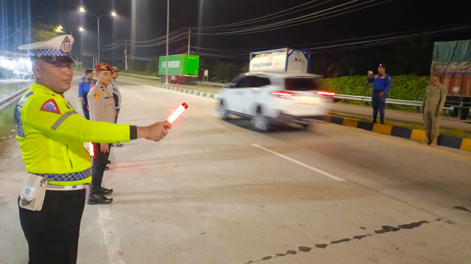Mulai pukul 21.30 WIB, personel Satlantas yang bertugas menyebar ke POS PAM I SIMP. EMPAT LIMA PULUH, POS PAM II SEI BEJANGKAR, POS YAN I SIMP. KUALA TANJUNG, dan POS YAN II EXIT TOL LIMA PULUH. Mereka berpatroli dan melakukan pengaturan lalu lintas, memastikan Keamanan, Keselamatan, Ketertiban, dan Kelancaran Lalu Lintas (Kamseltibcarlantas) tetap terjaga.