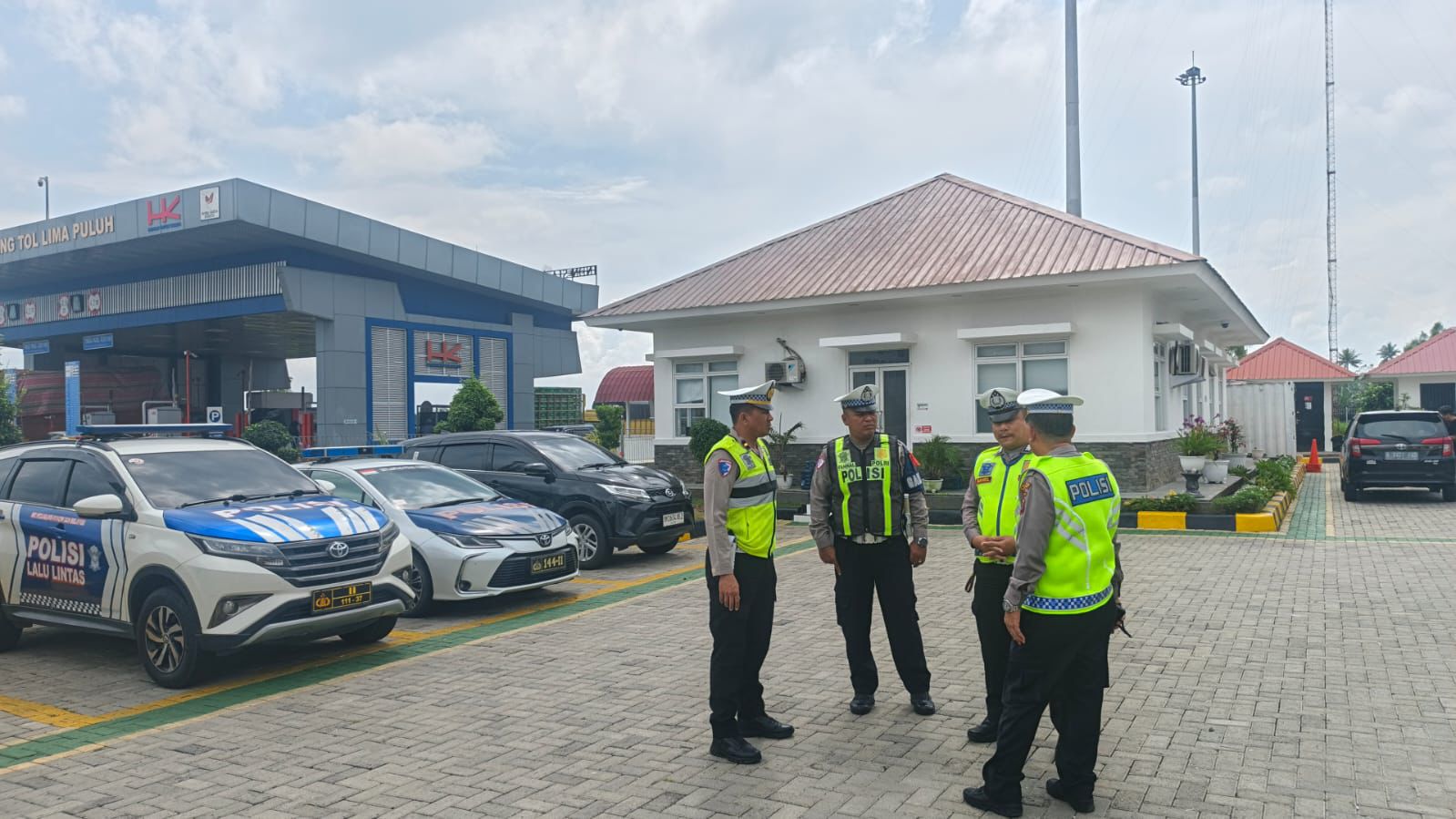 Lima Puluh, Batu Bara,Komposisinews.com – Satuan Lalu Lintas (Sat Lantas) Polres Batu Bara melakukan pengecekan arus lalu lintas dan koordinasi dengan pihak PT Hutama Karya (HK) di Pintu Gerbang Tol Lima Puluh, Sabtu (27/12/2025). Kegiatan ini dilakukan dalam rangka pengamanan Natal dan Tahun Baru (Nataru) serta Operasi Lilin Toba-2025.