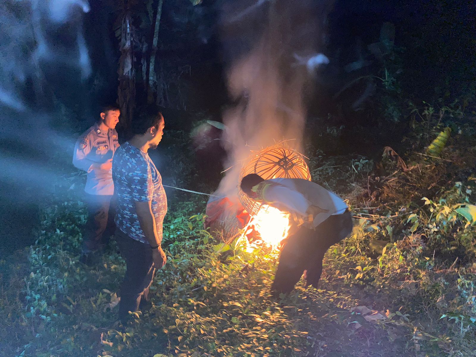 Selanjutnya, petugas langsung melakukan pembongkaran dan pembakaran sarana tersebut.