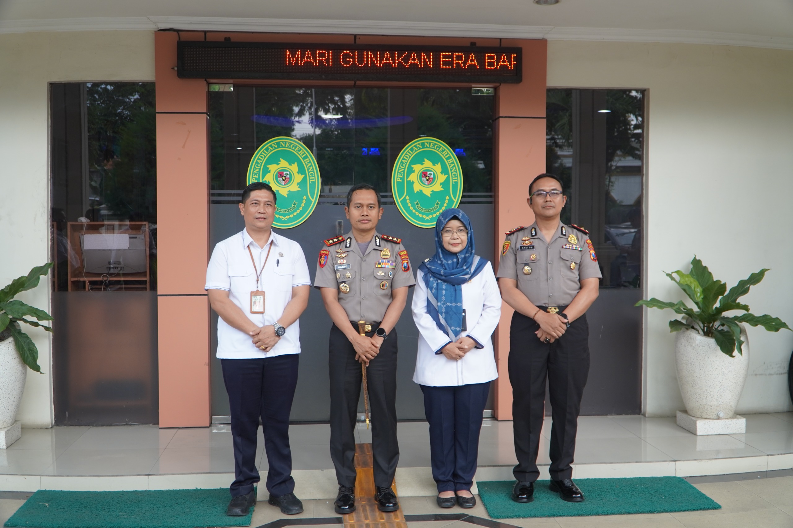 Agenda berikutnya, Kapolres berkunjung ke Pengadilan Negeri Bangil. Ketua PN Bangil Wahyu Iswari meminta dukungan pengamanan, terutama pada sidang-sidang yang berpotensi menghadirkan massa.