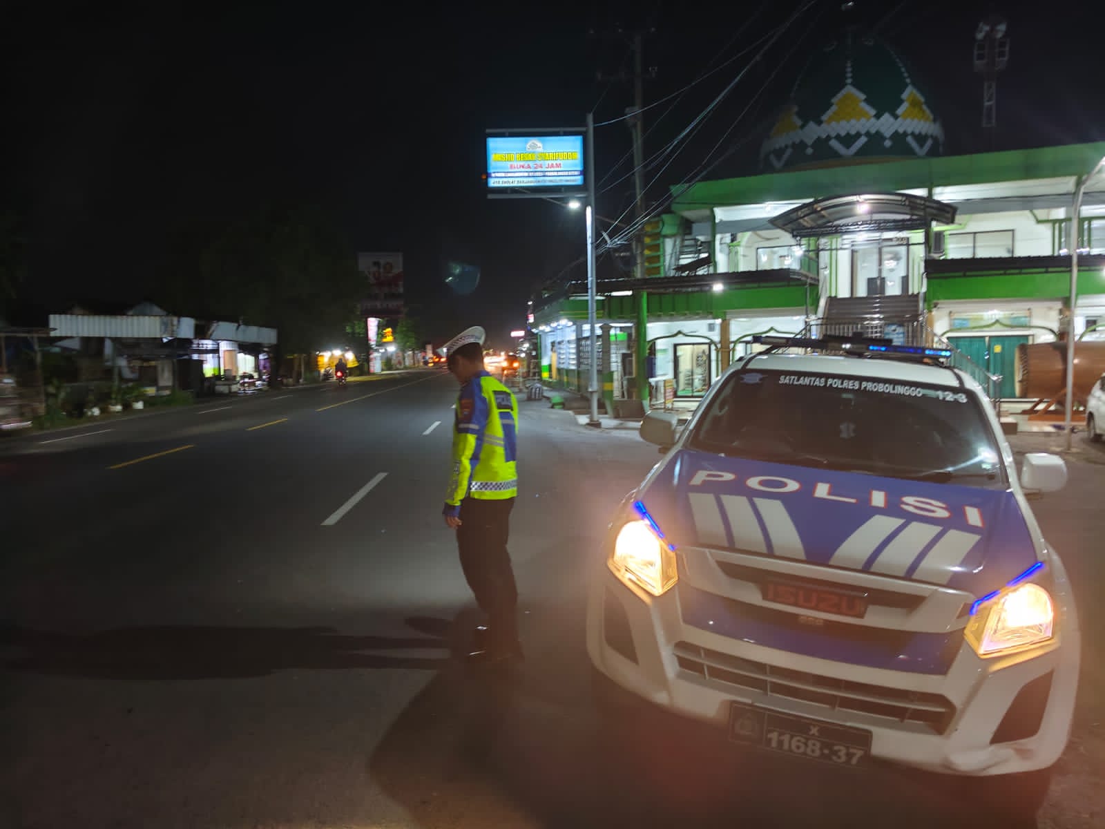 Petugas Satlantas Polres Probolinggo melakukan pemantauan di sejumlah titik rawan kecelakaan serta lokasi yang kerap dijadikan tempat berkumpulnya para pengguna jalan pada malam hari. Selain melakukan patroli, petugas juga memberikan imbauan kepada masyarakat agar selalu mematuhi aturan lalu lintas demi keselamatan bersama.