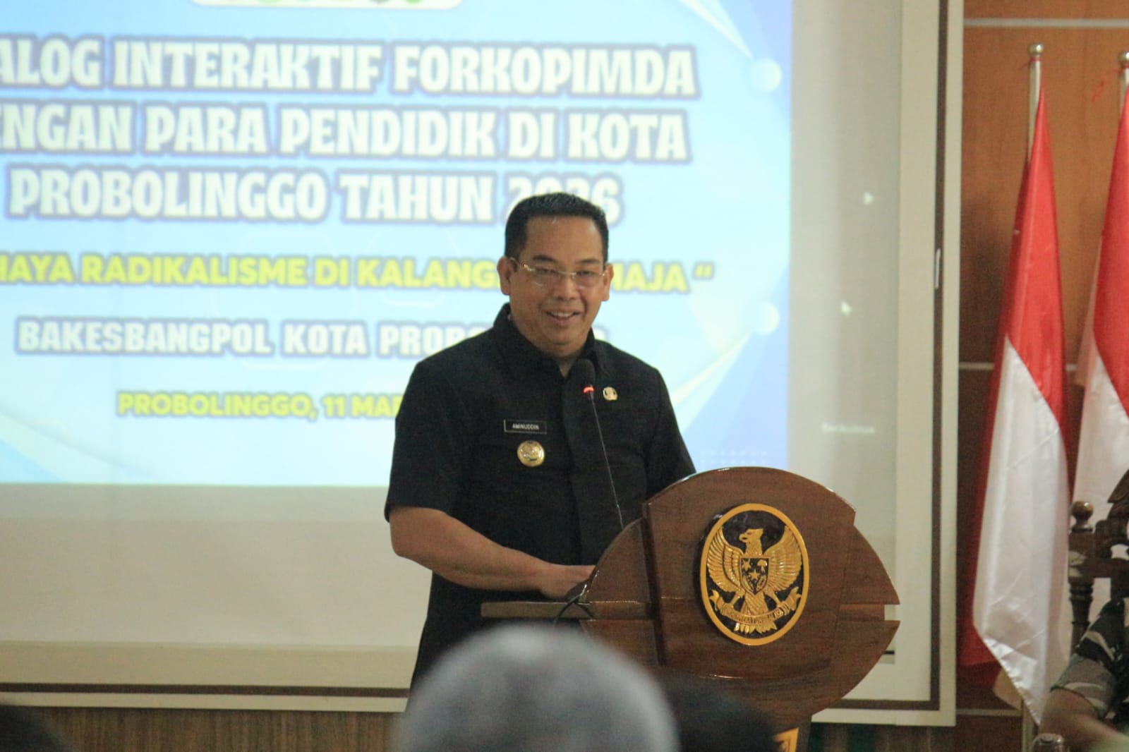 Probolinggo,Komposisinews.com -Sebagai upaya preventif terhadap bahaya radikalisme di kalangan remaja, Pemerintah Kota Probolinggo melalui Bakesbangpol menggelar Dialog Interaktif Forkopimda dengan Para Pendidik di Kota Probolinggo di Puri Manggala Bhakti Kantor Wali Kota Probolinggo, Rabu (11/3).
