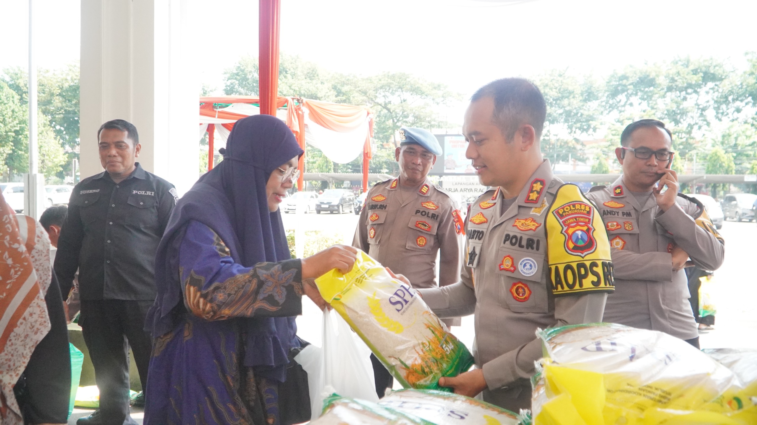 Kegiatan yang berlangsung di Mapolres Pasuruan dan serentak oleh seluruh Polsek jajaran. ini bertujuan membantu masyarakat memperoleh kebutuhan pokok dengan harga lebih terjangkau di tengah fluktuasi harga pangan.