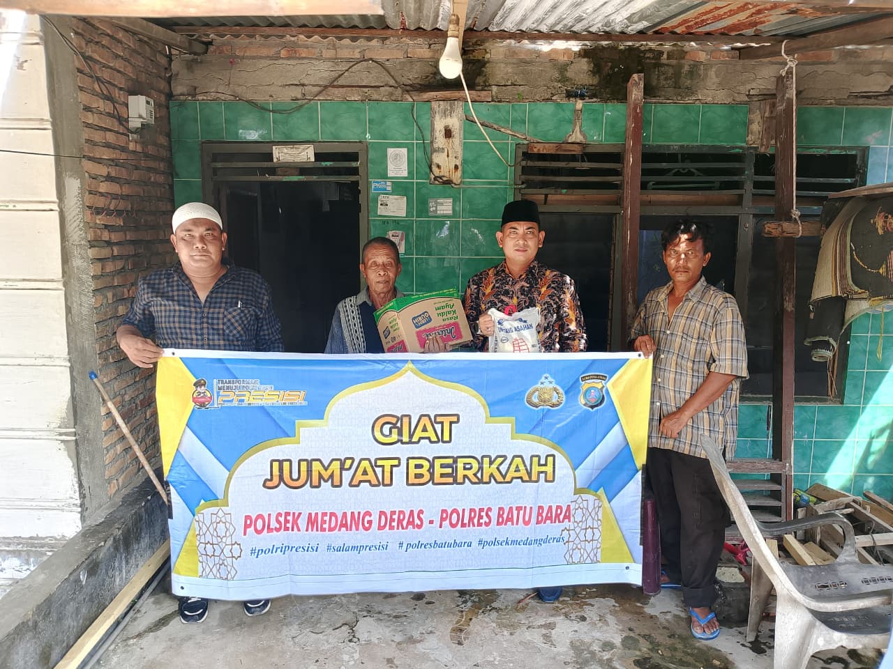 Batu Bara, Komposisinews.com – Polsek Medang Deras melaksanakan kegiatan Jumat Berkah dengan memberikan bantuan sembako kepada kaum dhuafa di wilayah hukumnya pada Jumat (13/03/2026) sekitar pukul 13.30 WIB. Kegiatan yang diwakili oleh Kanit Reskrim IPDA Muhammad Kadri, S.H., menggantikan Kapolsek Medang Deras AKP A.H. Sagala, ini merupakan bentuk kepedulian Polri terhadap masyarakat yang membutuhkan.