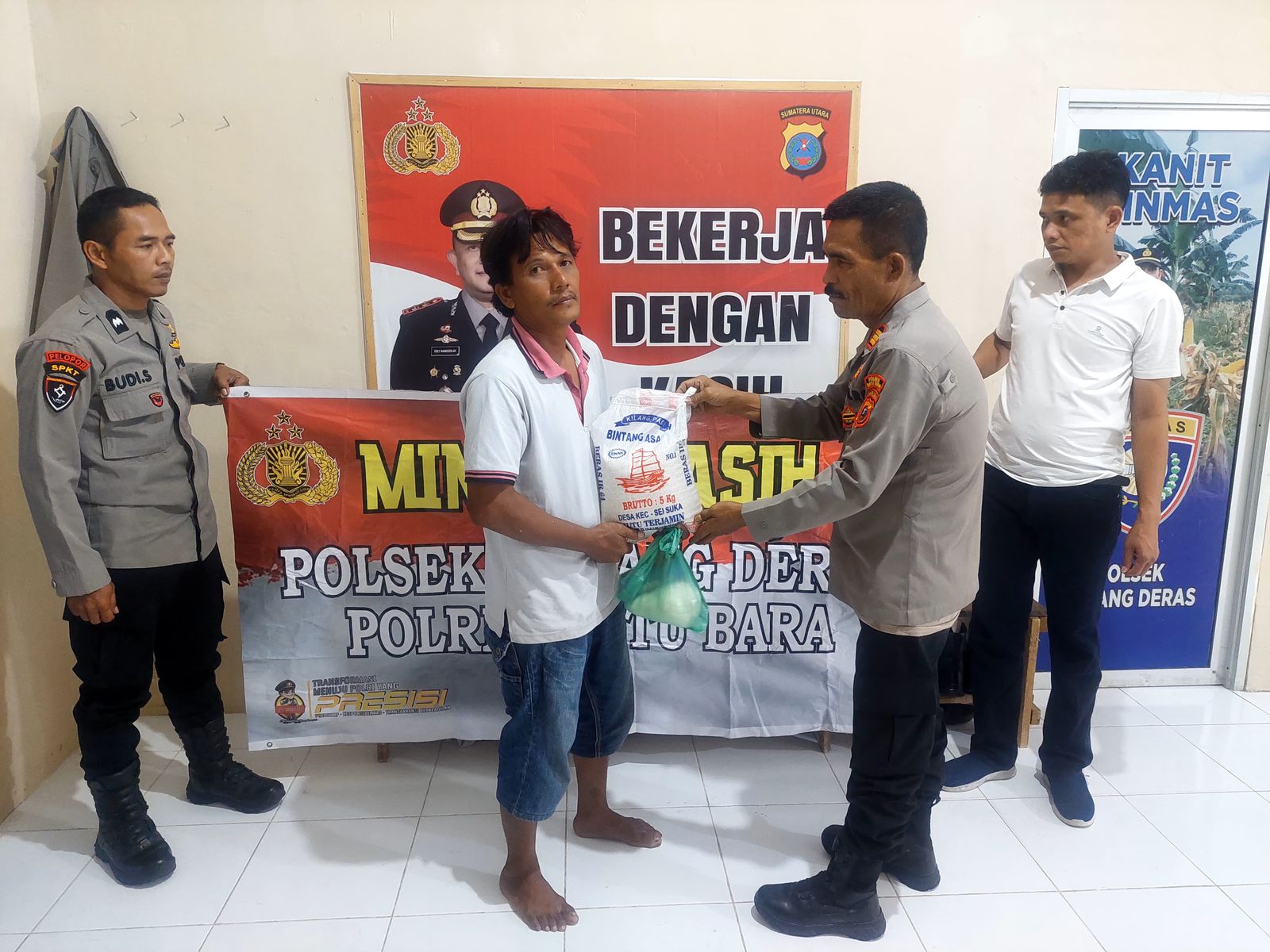 Dalam kegiatan yang dipimpin langsung oleh AKP A.H. Sagala (Kapolsek Medang Deras), bersama AIPDA Budi Santoso (Ka SPKT 3) dan AIPDA K. Samosir (Bhabinkamtibmas), tim menyerahkan bantuan sembako berupa beras dan gula kepada warga kurang mampu dari Desa Sei Buah Keras Kecamatan Medang Deras.