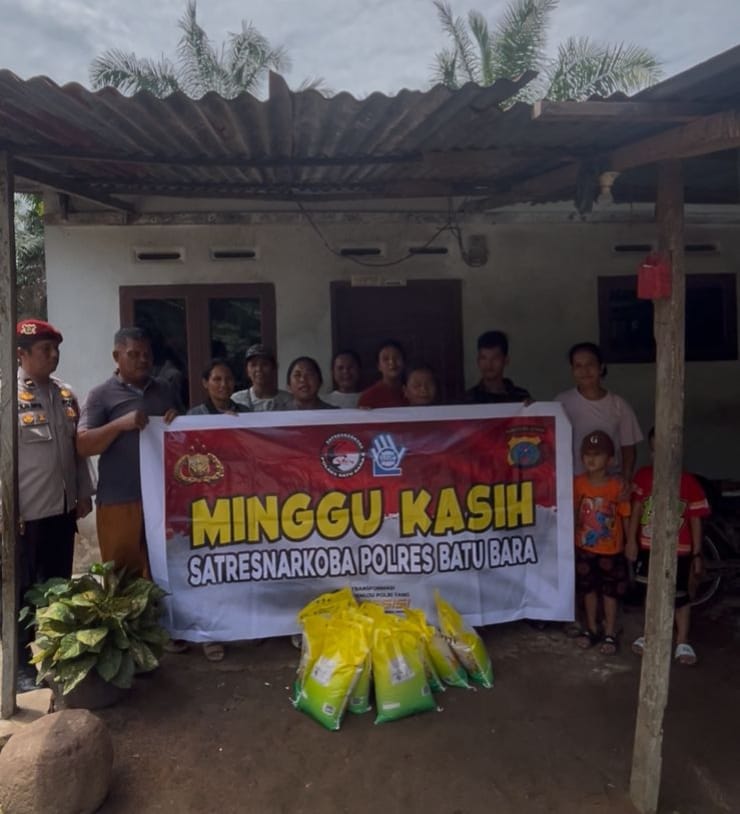Batu Bara, Komposisinews.com – Satuan Reserse Narkoba (Satresnarkoba) Polres Batu Bara menggelar kegiatan sosial “Minggu Kasih” pada Minggu (15/03/2026) sekitar pukul 12.30 WIB di Kampung Nainggolan, Desa Empat Negeri, Kecamatan Datuk Lima Puluh. Kegiatan ini tidak hanya berisi pembagian sembako kepada warga kurang mampu, tetapi juga menjadi ajang sosialisasi penting mengenai bahaya penyalahgunaan narkoba.