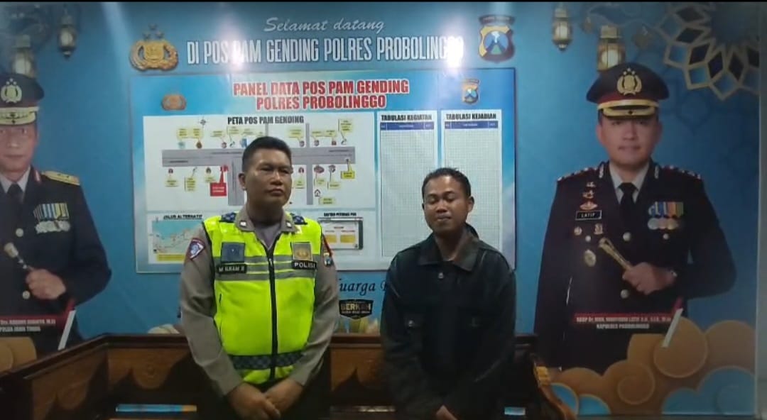 Seorang pemudik asal Banyuwangi, Ahmad Sofi, yang tengah melakukan perjalanan menuju Madura, menyempatkan diri singgah dan beristirahat di Pos Pengamanan (Pos Pam) Gending, Kabupaten Probolinggo.