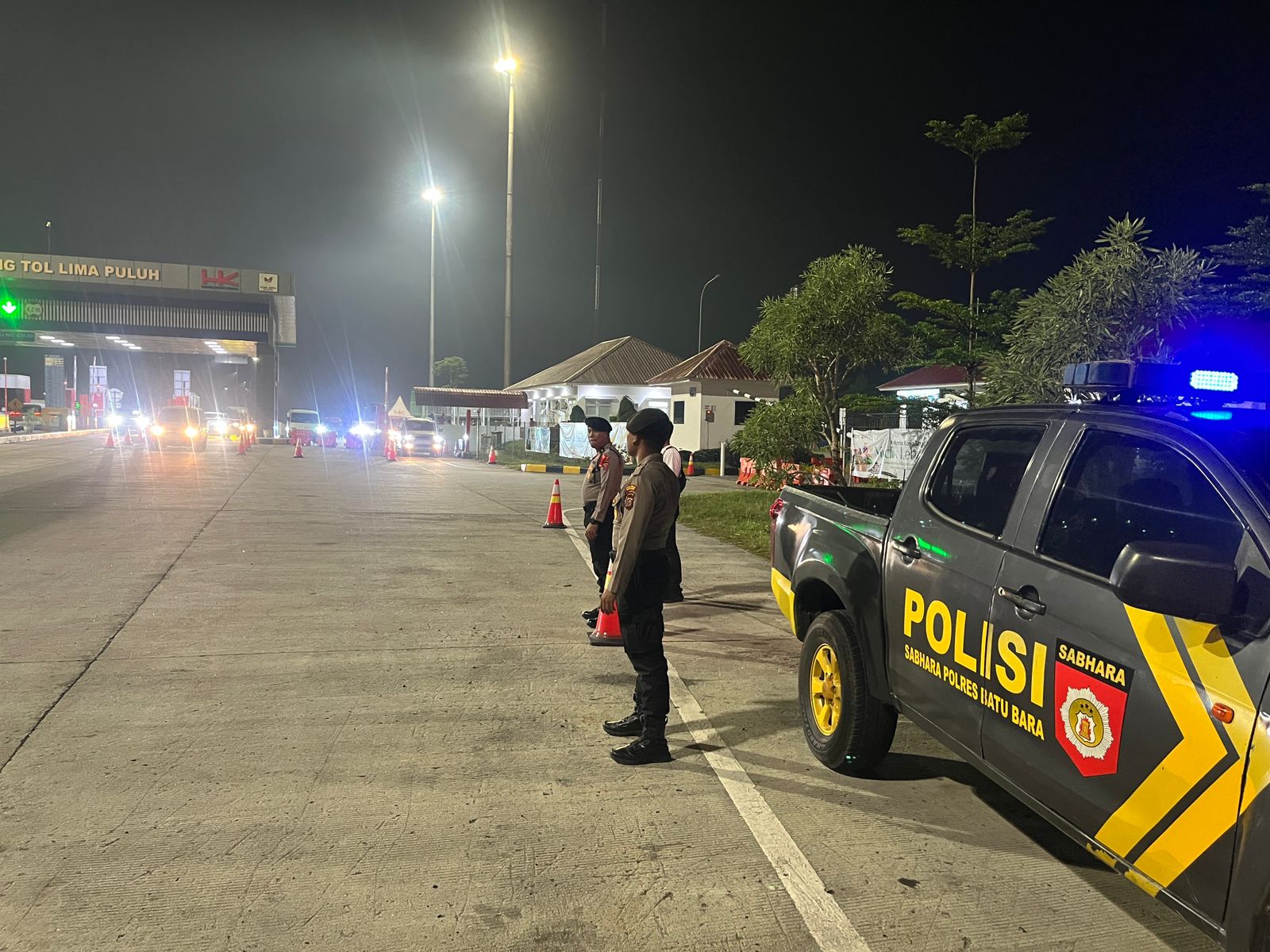 Batu Bara,Komposisinews.com – 23 Maret 2026 – Personil Pengamanan (Pam) Polres Batu Bara melaksanakan kegiatan patroli dan pengamanan guna mengantisipasi kemacetan pada masa arus balik perayaan Idul Fitri 1447 H. Kegiatan yang berdasarkan Undang-Undang Nomor 2 Tahun 2002 tentang Kepolisian Republik Indonesia serta Surat Perintah Kapolres Batu Bara Nomor Sprint / 315 / III / OPS:1.1.2026 tanggal 13 Maret 2026 ini berlangsung pada hari Minggu (22/3) pukul 21.00 WIB di Gerbang Tol Lima Puluh.