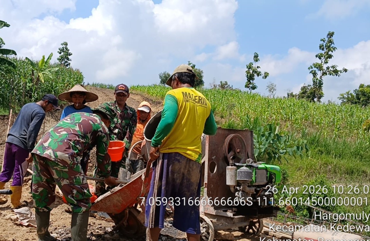 BOJONEGORO,Komposisinews.com – Jajaran Bintara Pembina Desa atau Babinsa Kodim 0813 Bojonegoro, terus menunjukkan komitmennya dalam mendukung percepatan pembangunan infrastruktur diwilayah binaan. Terdapat 10 titik pembangunan Jembatan Perintis Garuda diwilayah Kabupaten Bojonegoro tengah digarab oleh TNI.