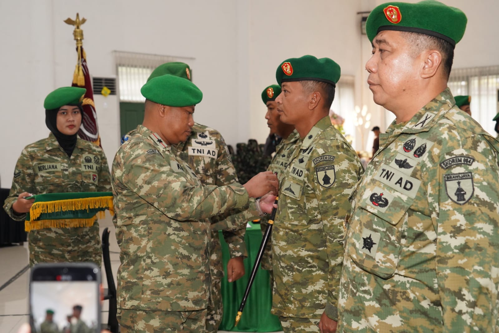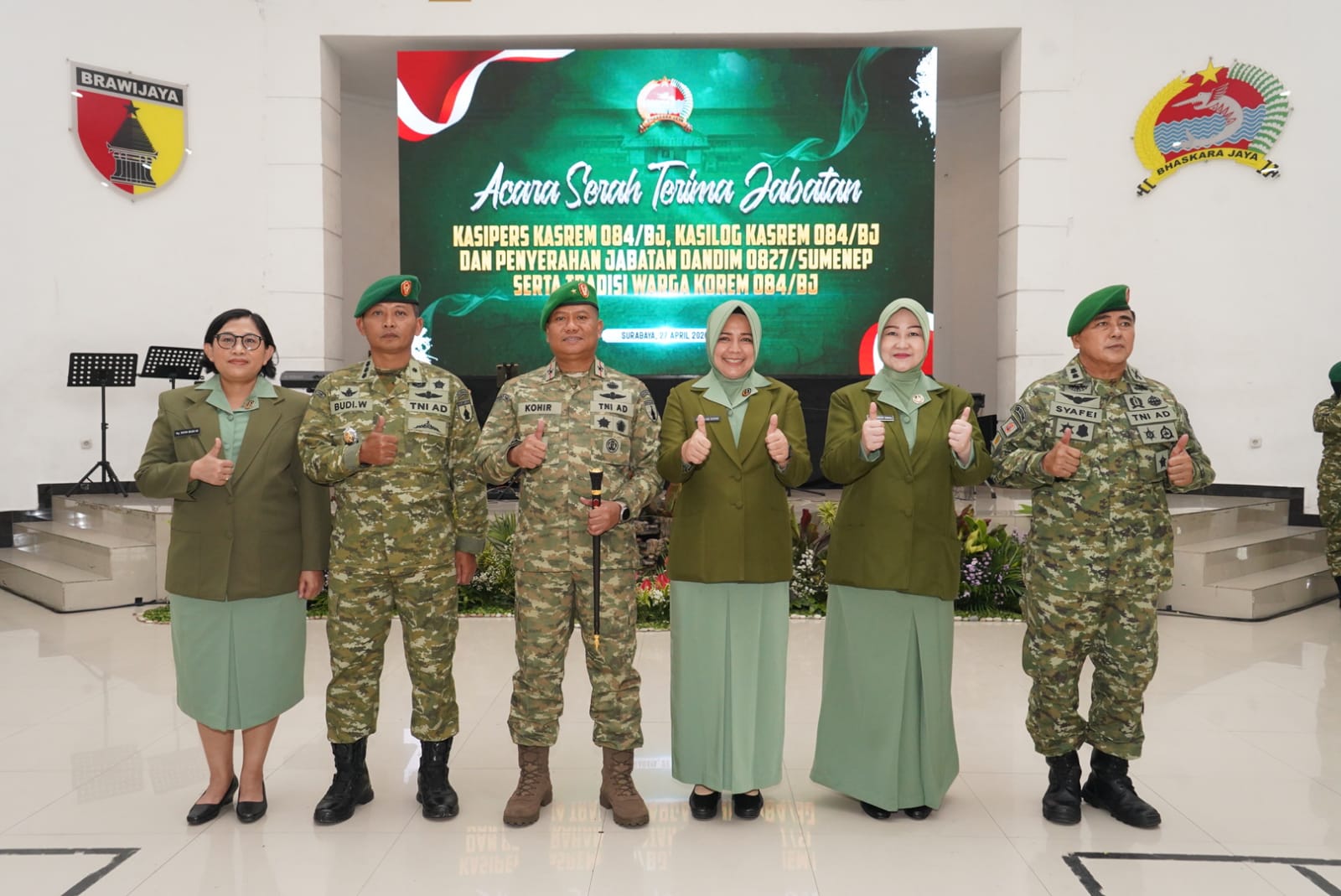 Adapun pejabat yang melaksanakan serah terima jabatan di antaranya Kasi Pers dari Kolonel Inf Adhe Hansen kepada Letkol Arm Drs. Sapei, Kasilog dari Kolonel Cba Dian Bagas Priyo Irianto kepada Kolonel Cba Budi Widianto, serta penyerahan jabatan Dandim 0827/Sumenep kepada Letkol Inf Citra Persada.