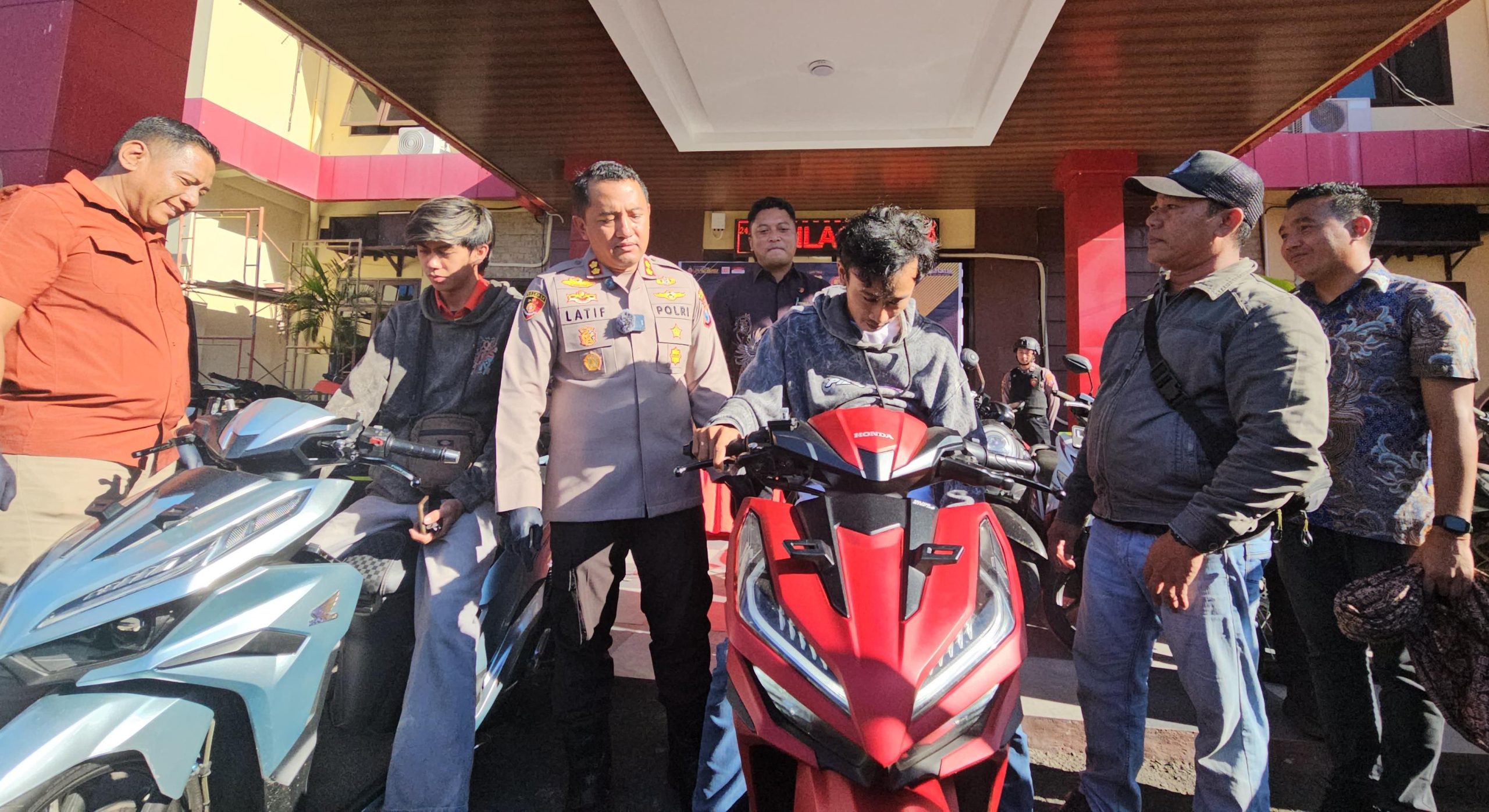 “Dalam patroli tersebut, petugas melihat dua orang mencurigakan, satu mengendarai Honda Vario silver dan satu lainnya mendorong Honda Vario bernopol N 3784 RM ke arah selatan, ujar Kapolres” ungkap AKBP Latif.