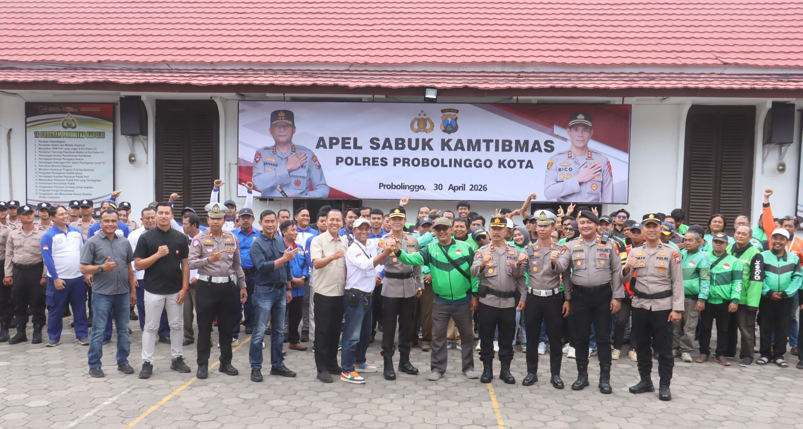 PROBOLINGGO,Komposisinews.com – Polres Probolinggo Kota menggelar Apel Besar Sabuk Kamtibmas di Lapangan Apel Polres Probolinggo Kota, Kamis (30/4/2026). Kegiatan ini menjadi bagian dari upaya memperkuat sinergi antara kepolisian dan elemen masyarakat dalam menjaga keamanan dan ketertiban masyarakat (kamtibmas) tetap kondusif.